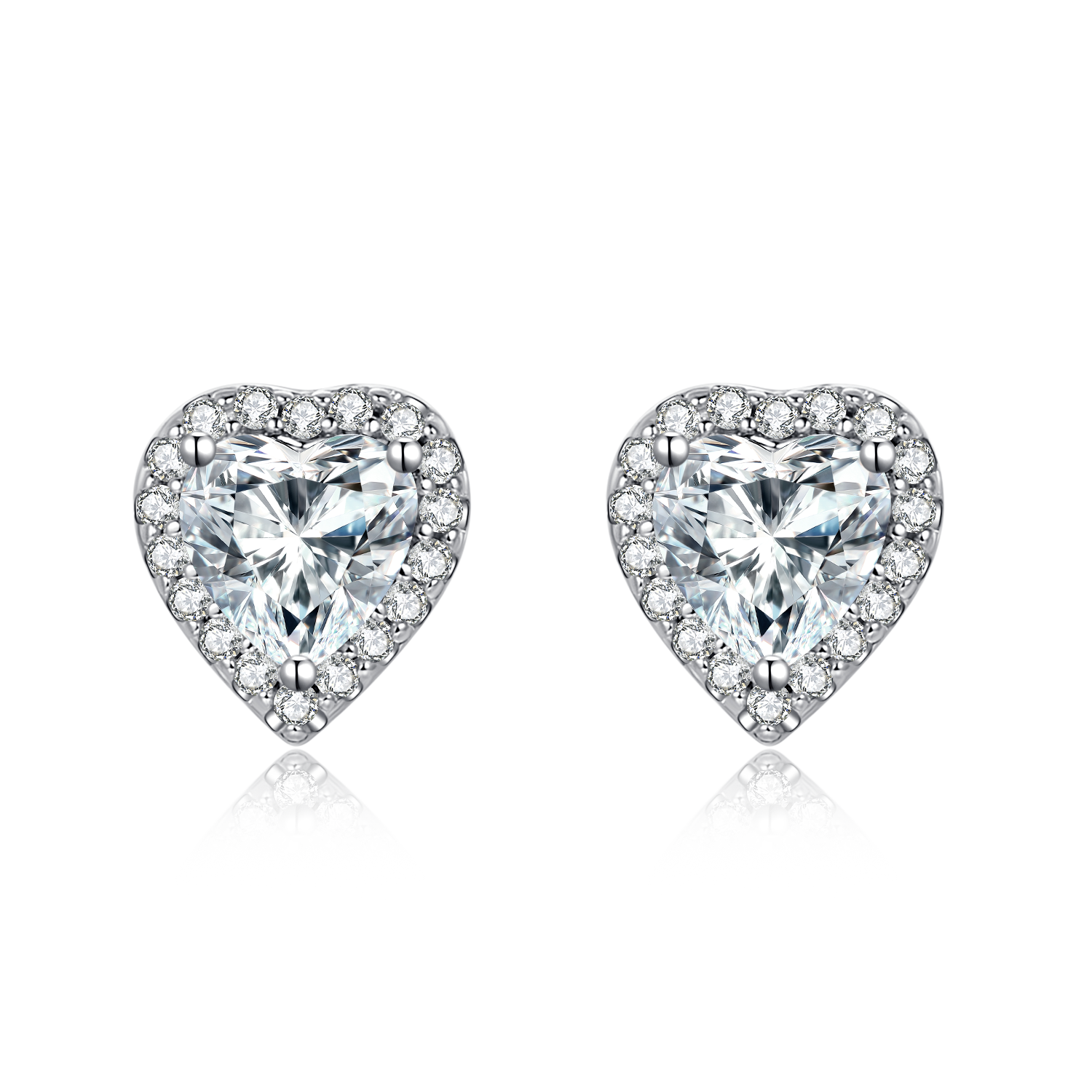 This exquisite earrings features a 0.5-carat heart shape Moissanite stone as its centerpiece. which is known for its brilliant sparkle and exceptional durability.