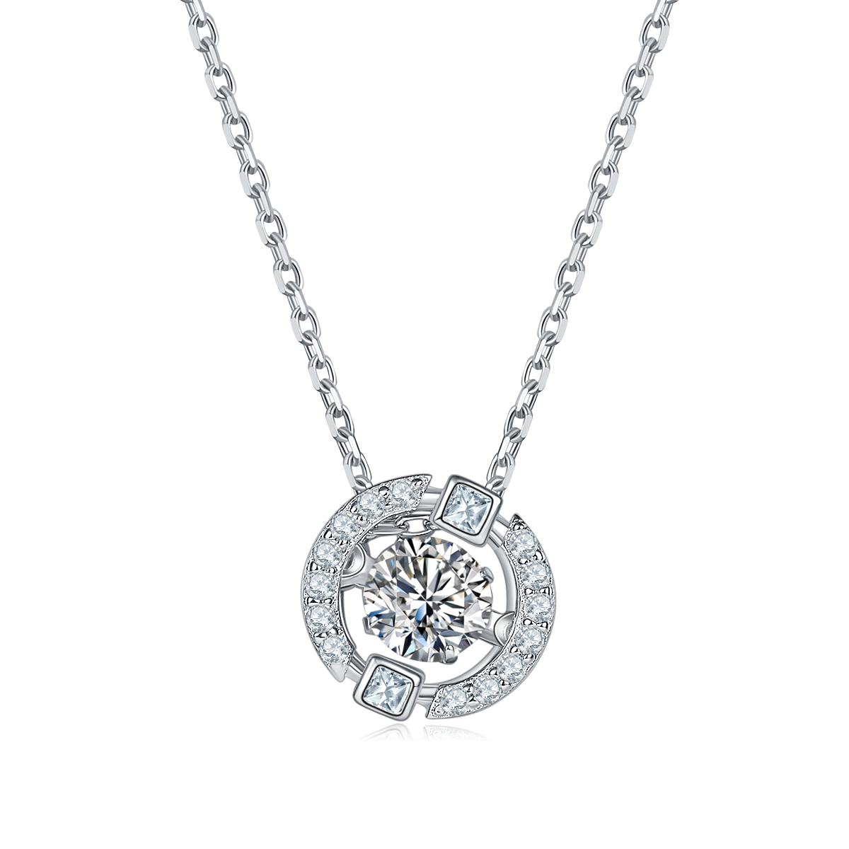 This circle dream spirituel necklace showcases a stunning 0.5CT Moissanite gemstone at its center. The small Moissanite stones form a circle halo around the center stone to add extra sparkle and glamour to the circle-shaped design. Crafted in sterling sliver that is designed for a secure and comfortable fit.