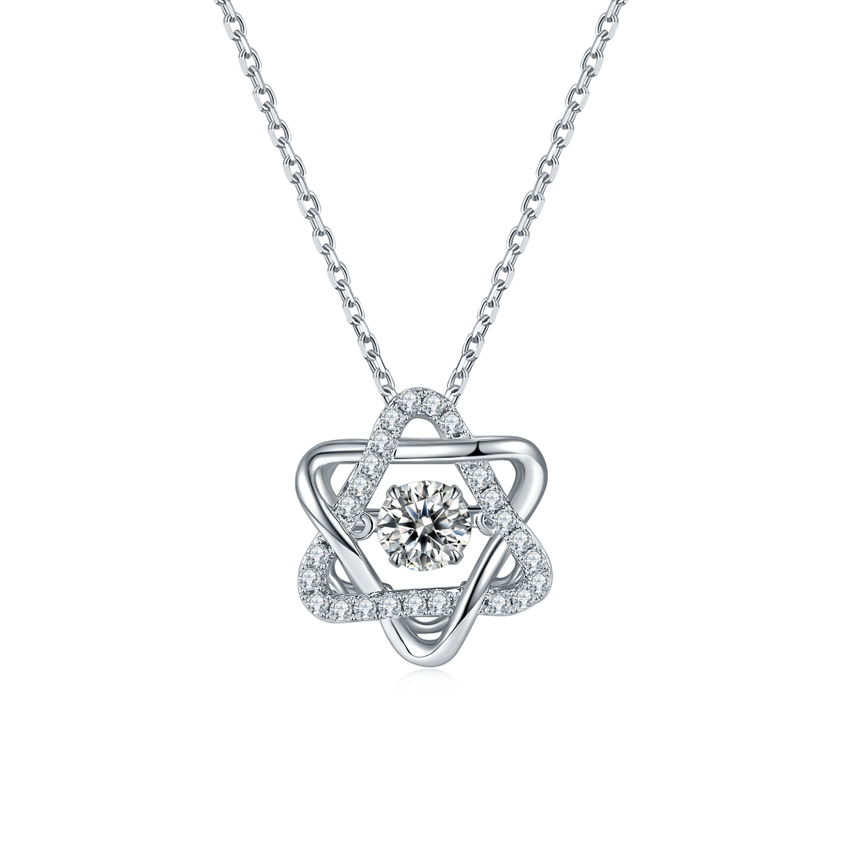 The pendant showcases a hexagram star design. which is also known as the Star of David. is formed by two overlapping triangles. creating a harmonious and balanced look. It's often associated with spirituality. protection. and unity. making this necklace a meaningful gift or personal accessory.