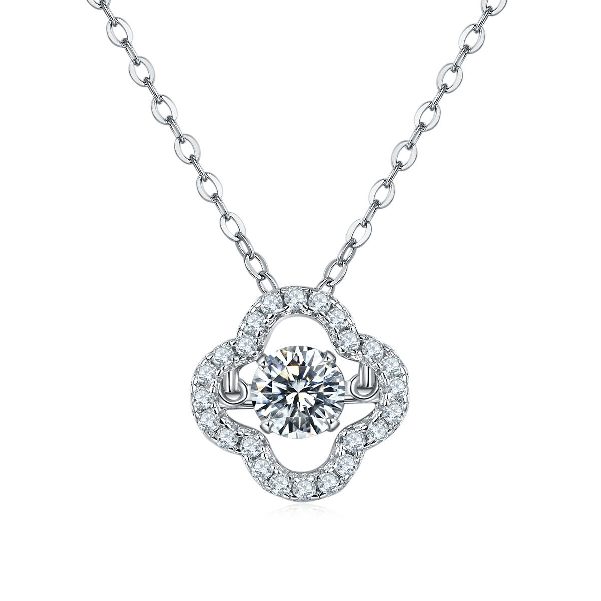 This necklace features a 0.5 carat Moissanite stone. The pendant of the necklace is designed in the shape of a lucky clover. This design element is often associated with good luck and fortune. making it an ideal gift for someone special or as a personal symbol of good luck.
