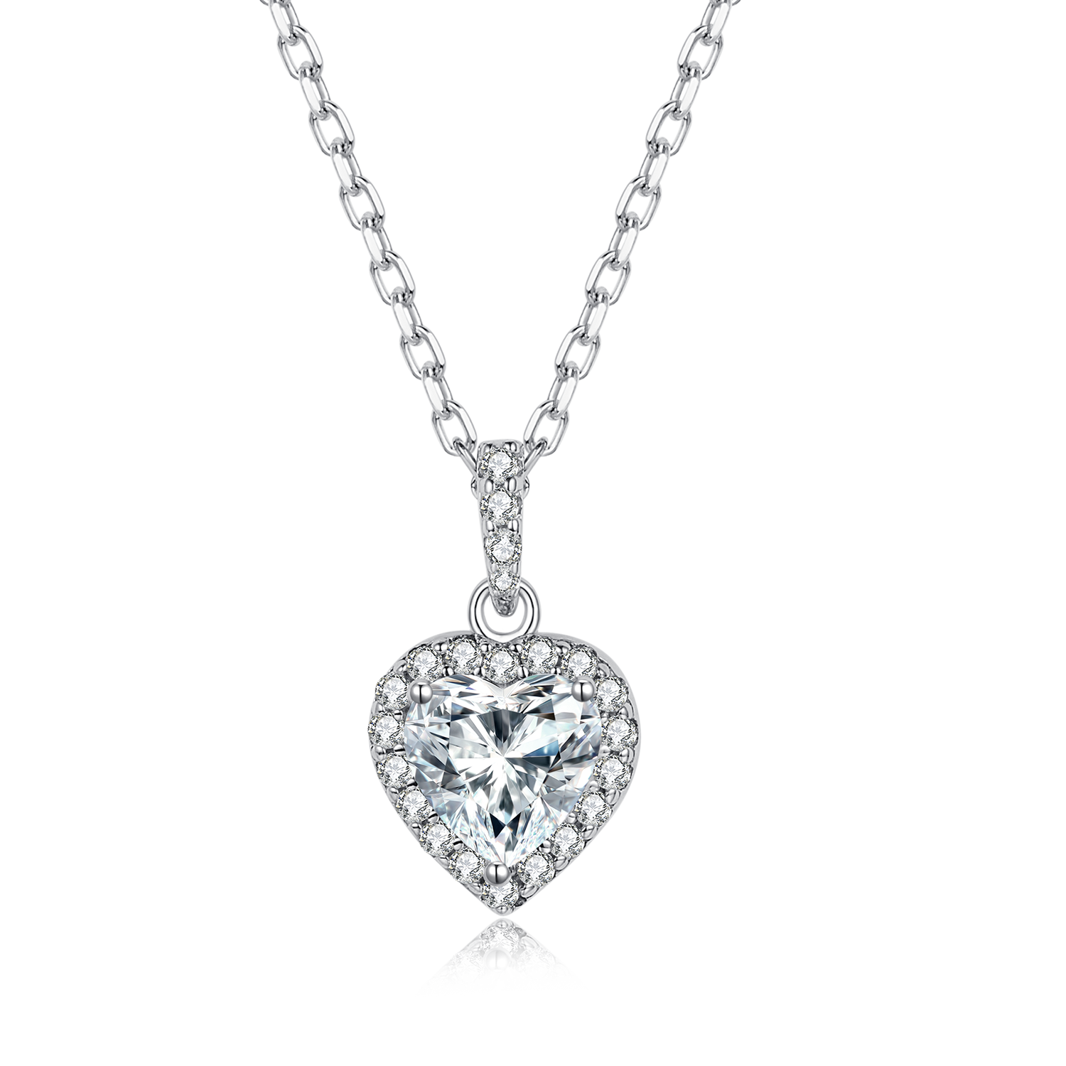 This exquisite necklace features a 1.0-carat heart shape Moissanite stone as its centerpiece. which is known for its brilliant sparkle and exceptional durability.