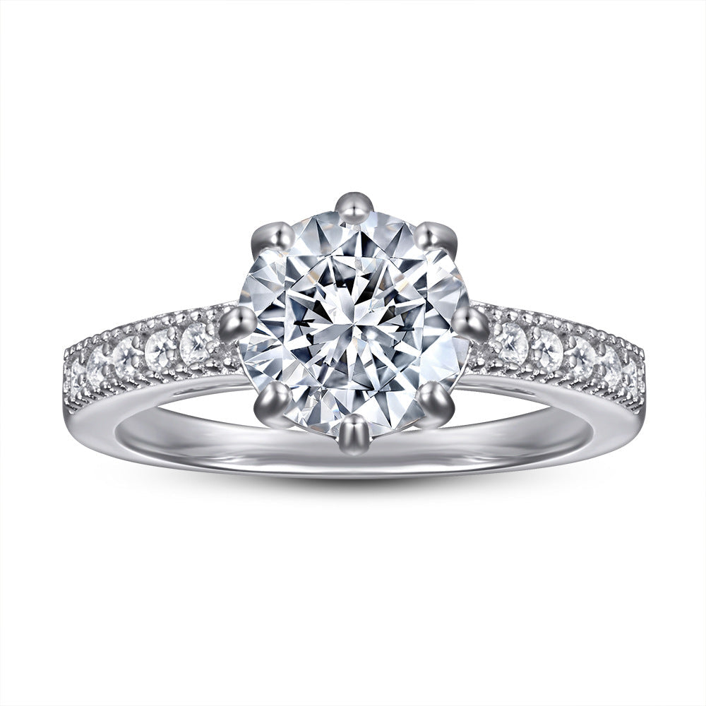 This classic 1.0CT Eight Prongs Round Zircon ring for women features a Cathedral style and a timeless design. It features a perfectly cut and luminescent round Zircon centerpiece. expertly set in a sturdy sterling silver ring band decorated with small zircons. to ensure lasting quality. Graceful and elegant. this ring is the perfect choice for any formal occasion.