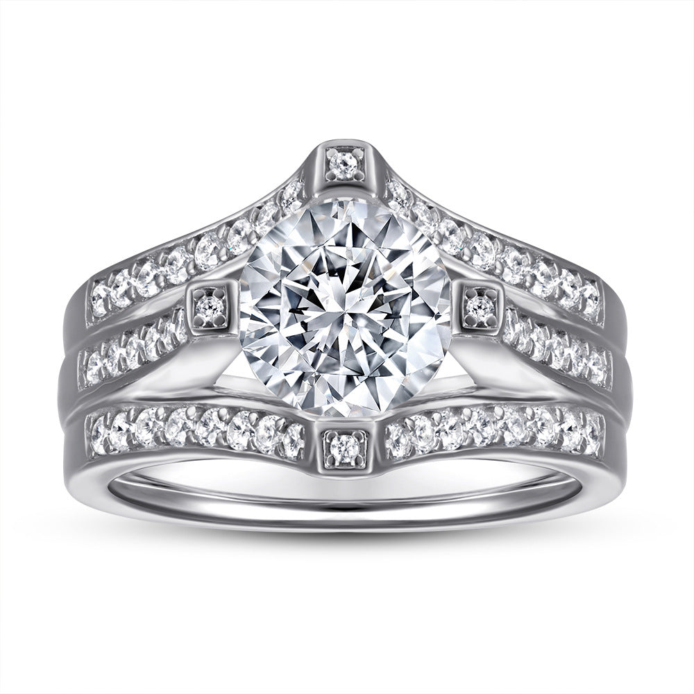 This stunning 1.0CT Round Zircon Three Layer Modern Split Shank Silver Ring for Women features a three-layer shank ring arm design and is delicately decorated with small zircons. complementing the central round zircon stone. With its unique luxury design. it is the perfect way to add a touch of glamour to any outfit.