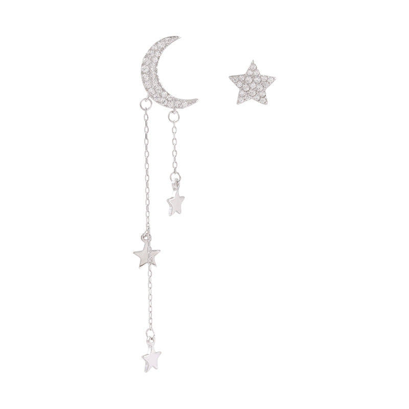 This Zircon Star Moon Tassels Asymmetric Silver Drop Earrings is ideal for adding a dazzling touch to your look. In their asymmetric design. they feature a Zircon Star studs and a zircon Moon with Tassels. Perfect for any special event or occasion. they'll make sure you stand out from the crowd.