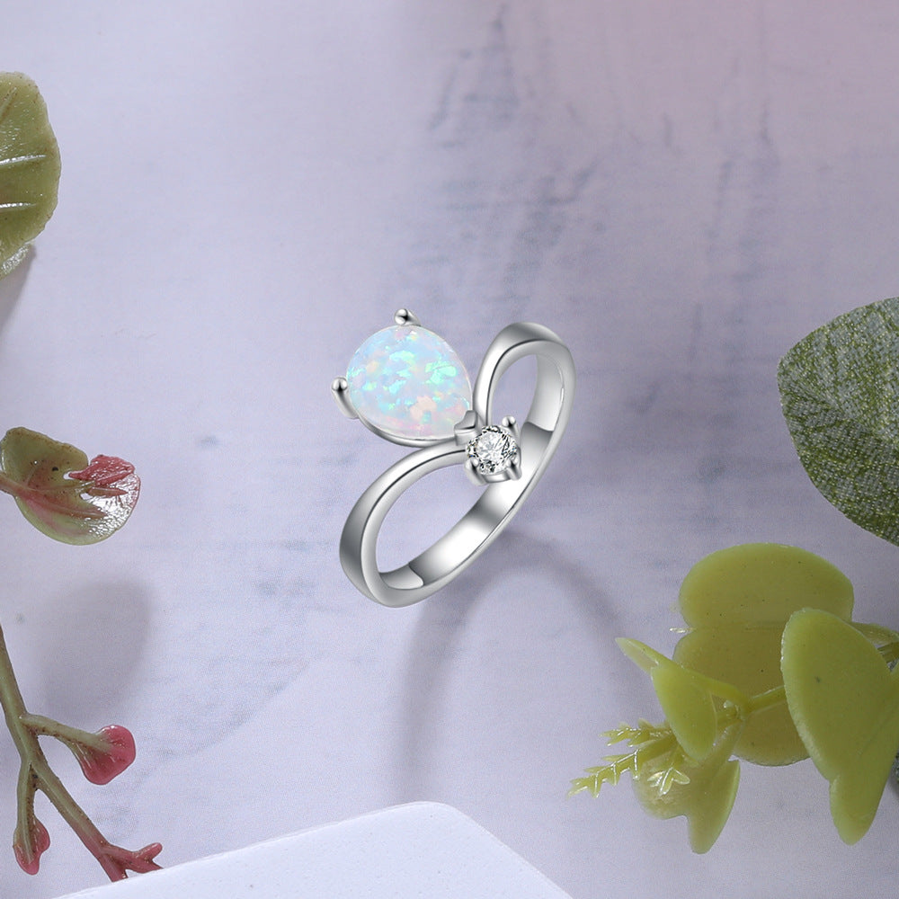 Delicate and timeless. this elegant sterling silver V-shape ring is the perfect addition to any jewelry collection. Appointed with a pear-shaped opal and a dainty zircon. it is the embodiment of luxury and sophistication.
