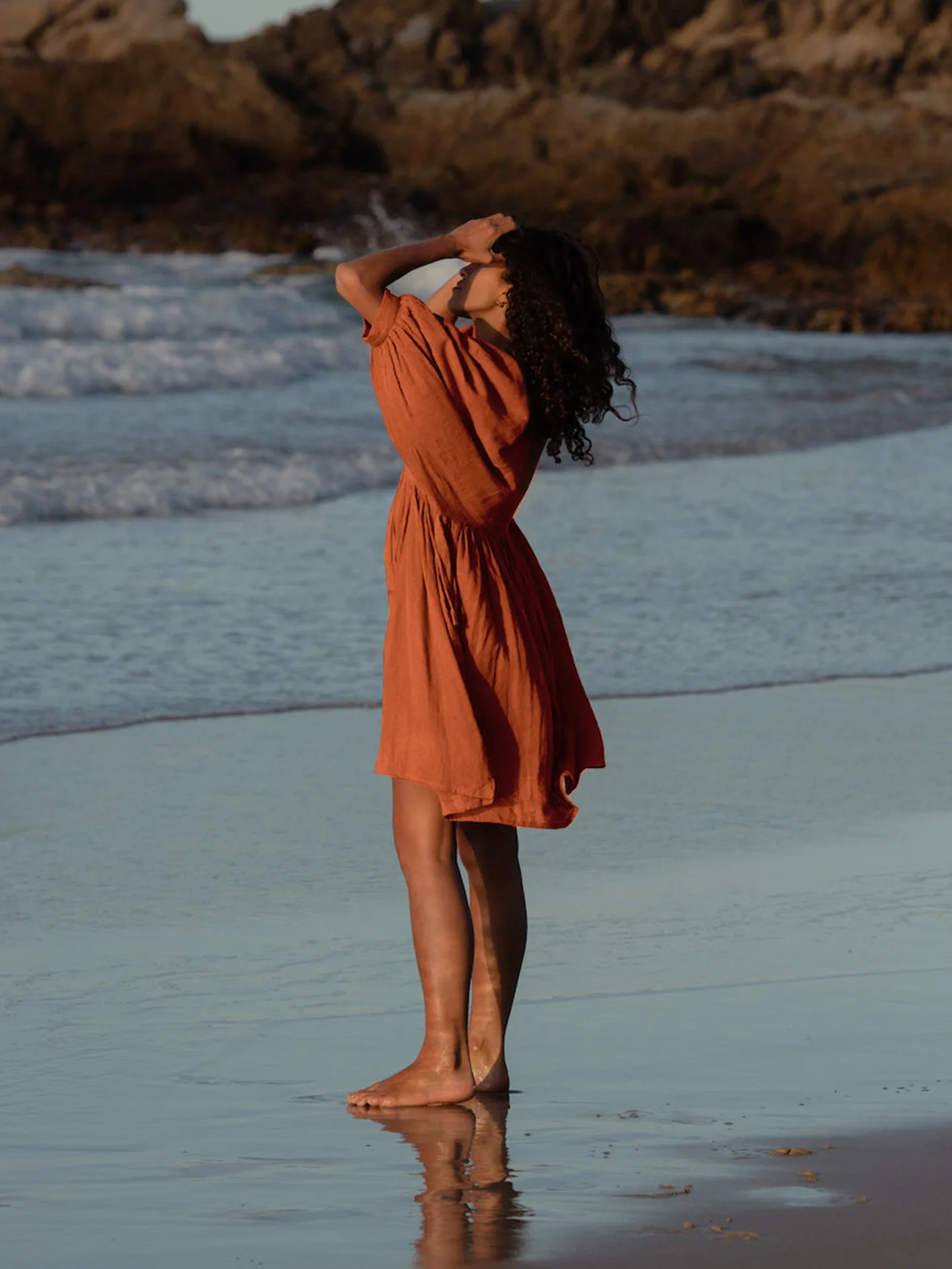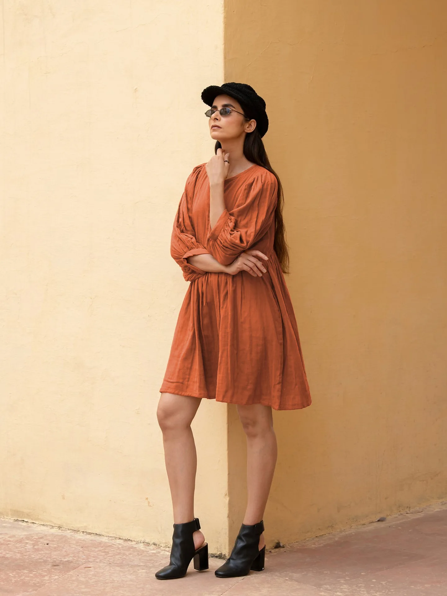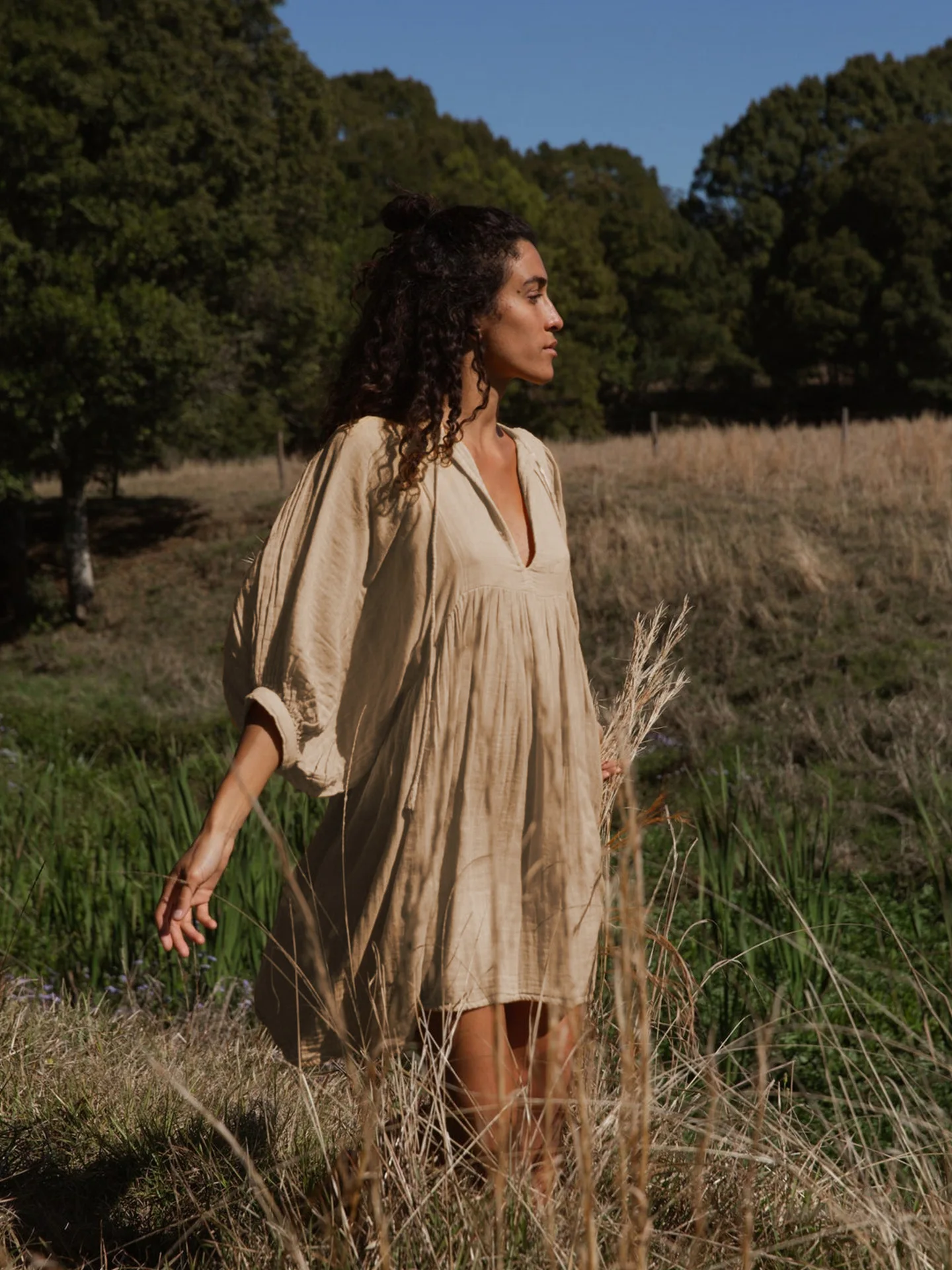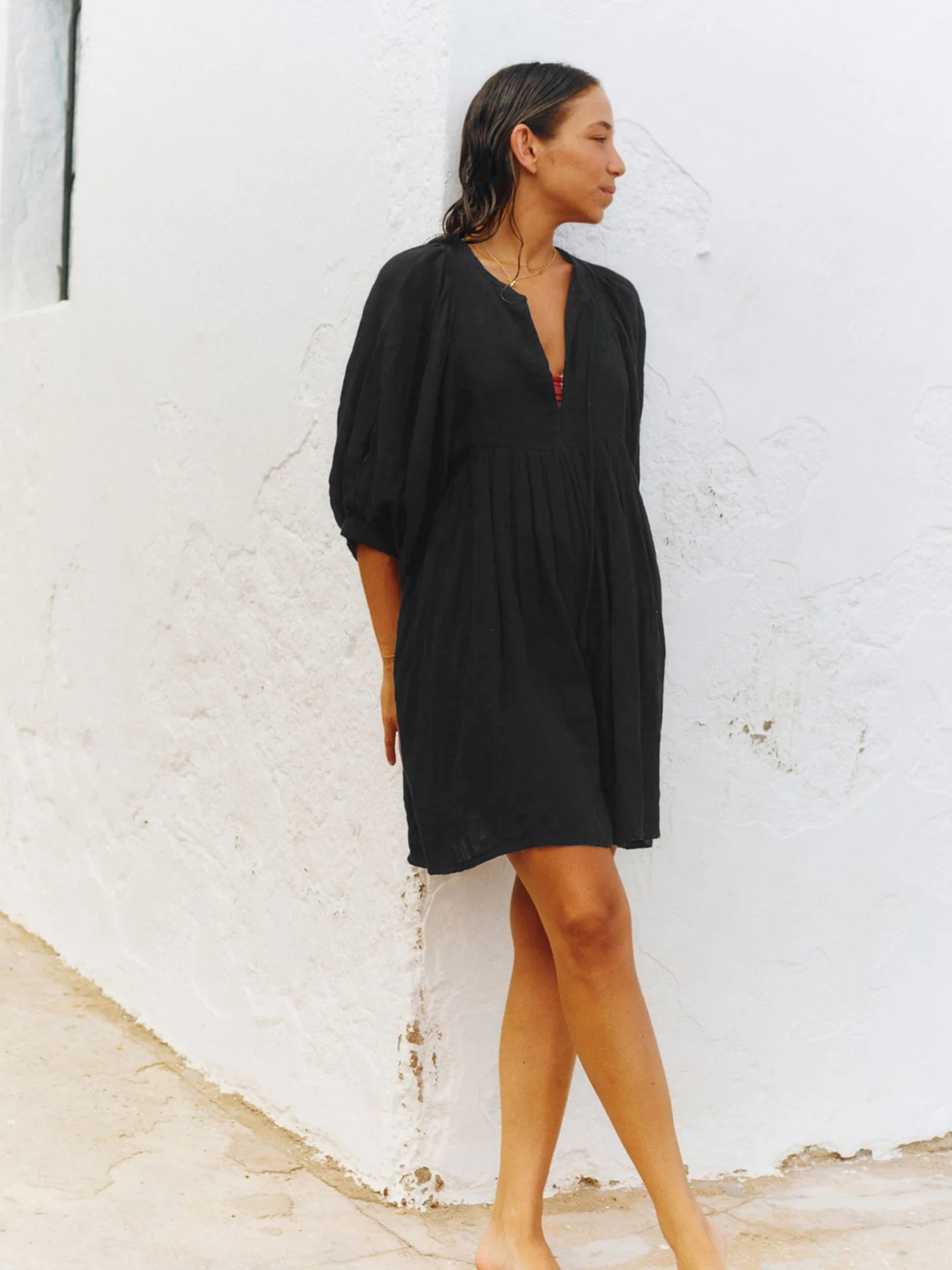 2023 New Oversized Spring Dress Round Neck Lace Up Bat Sleeve Fashion Beach Mini Dress Pleated Large Size Vintage Boho Dress
