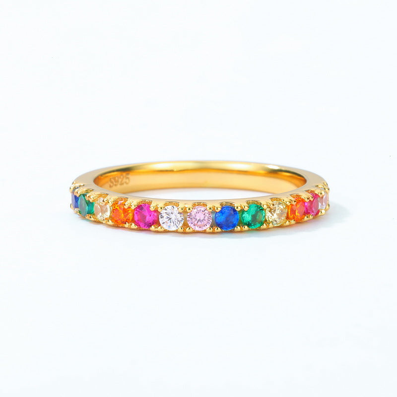 This Round Shape Colourful Zircon Barbie Half Eternity Silver Ring will add a touch of flair to any look. Expertly crafted with a Half Eternity Ring design. featuring shimmering Round Shape Colourful Zircons and plated in golden. Add some glamour to your wardrobe with this timeless piece.