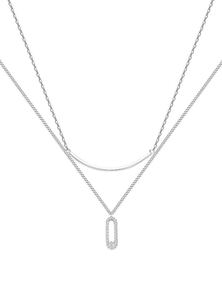This stylish silver necklace for women features two layers of elegant design. The zircon oval shape pendant and a unique smile-shape pendant add a glamorous touch and make this necklace perfect for any occasion. Expertly crafted from sterling silver. this necklace will complete your look with sophistication.