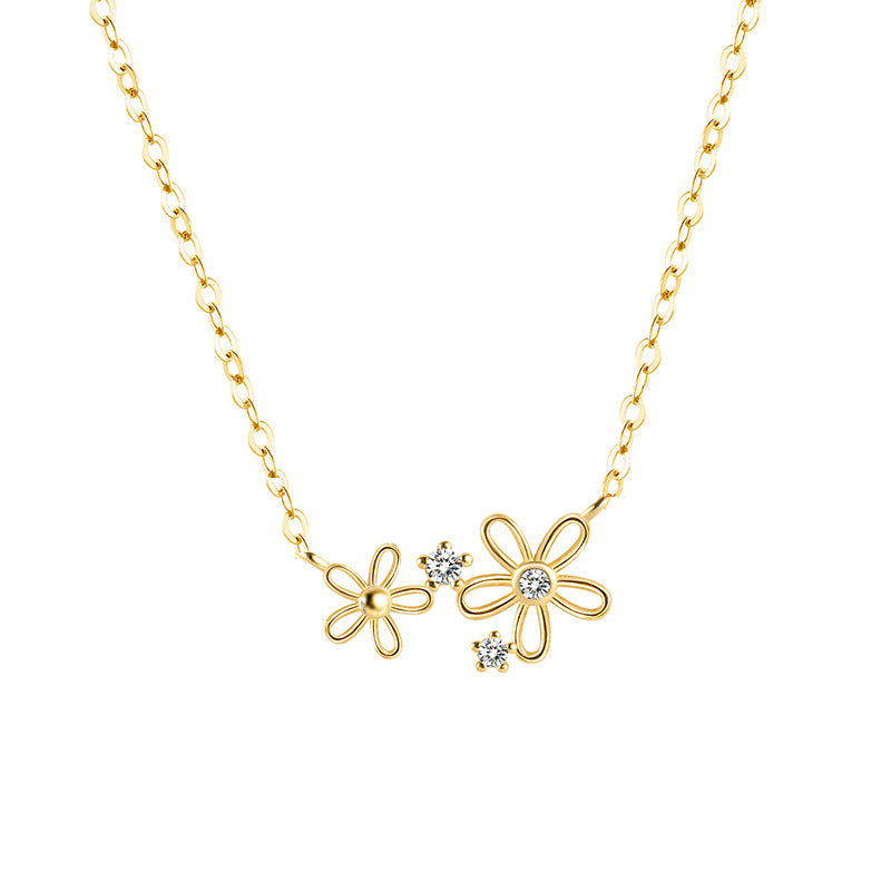 This exquisite necklace features two beautiful flower pendants. and elaborately decorated with sparkling zircon stones. Crafted in sterling sliver. this piece exudes timeless beauty that is sure to catch attention. It's a perfect accessory for any occasion.
