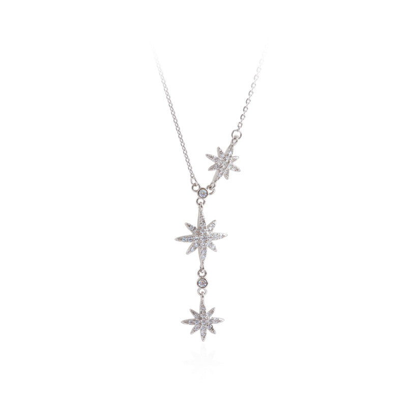 This stunning necklace features an elegant tassel design with three zircon stars. The beautiful design is perfect for women. adding a special sparkle to any look. Crafted from sterling silver. this necklace is a timeless addition to any jewelry collection.
