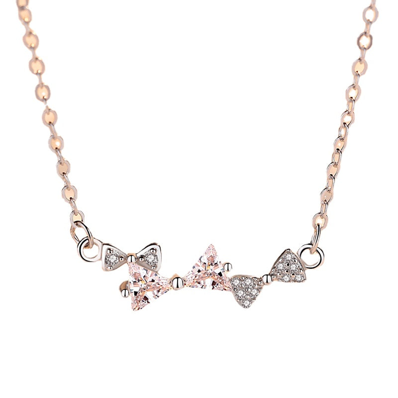 This stylish necklace for women features a pendant of three bowknots. each of which is adorned with glistening Zircon stones for added sparkle. Showcasing an elegant silhouette. this accessory is sure to add an extra touch of sophistication to any outfit.