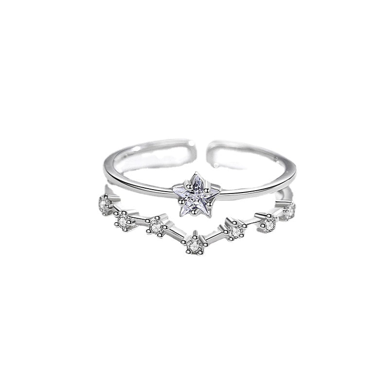 This elegant Zircon Star Double Layers Silver Ring has an opening design and features two layers of exquisitely crafted in sterling silver. The top layer consists of a star-shaped Zircon. set off by a row of small round Zircons in the other layer. A perfect gift to add a unique and stunning splash of shine to any look.