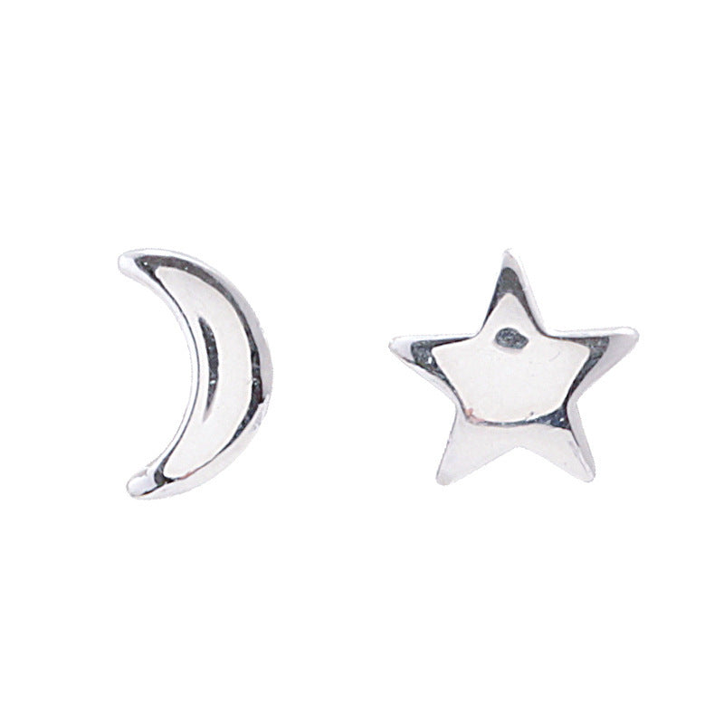This stylish Mini Star Moon Silver Studs Earrings for Women feature an asymmetric design. with star and moon. Perfect for everyday style. the earrings add a subtle sparkle and shine to any look. Made from sterling silver. they are durable. comfortable. and perfect to wear all day long.