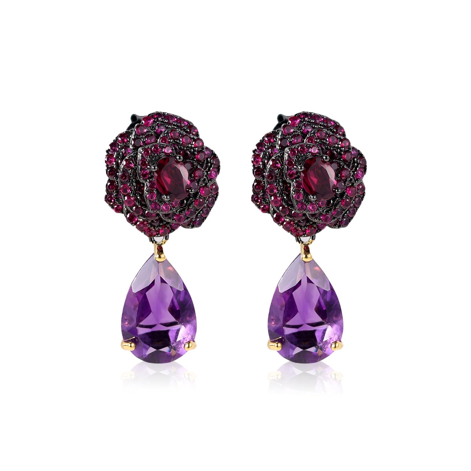 This Natural Amethyst Rose Tears Silver Drop Earrings for Women provide a stunningly unique look. Crafted from a combination of rose-shaped and tear-shaped amethyst pendant. this earrings is a timeless yet beautiful choice for any fashionista.