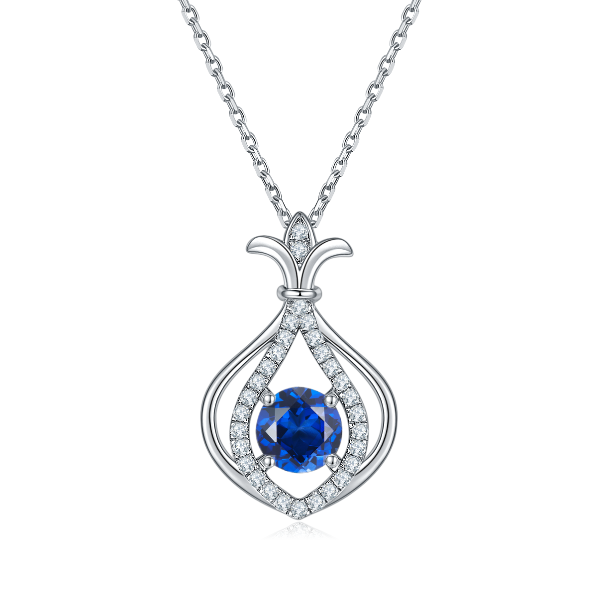 Adorn yourself with this exquisite Round Cut Blue Crystal Small Gourd Necklace . With a gleaming round blue crystal set in a unique small gourd. this sophisticated piece radiates timeless elegance. Let this chic necklace take your style to new heights of refinement and sophistication.
