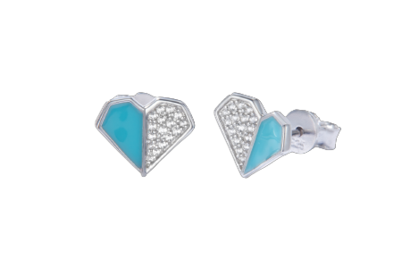 This earring is inspired by the heart shape. symbolizing the romance and sweetness of love. Half of the earrings are blue in enamel craftsmanship. symbolizing the vastness and depth of the sky and ocean. The other half is silver inlaid with zircon. symbolizing the radiance and gentleness of stars and the moon.