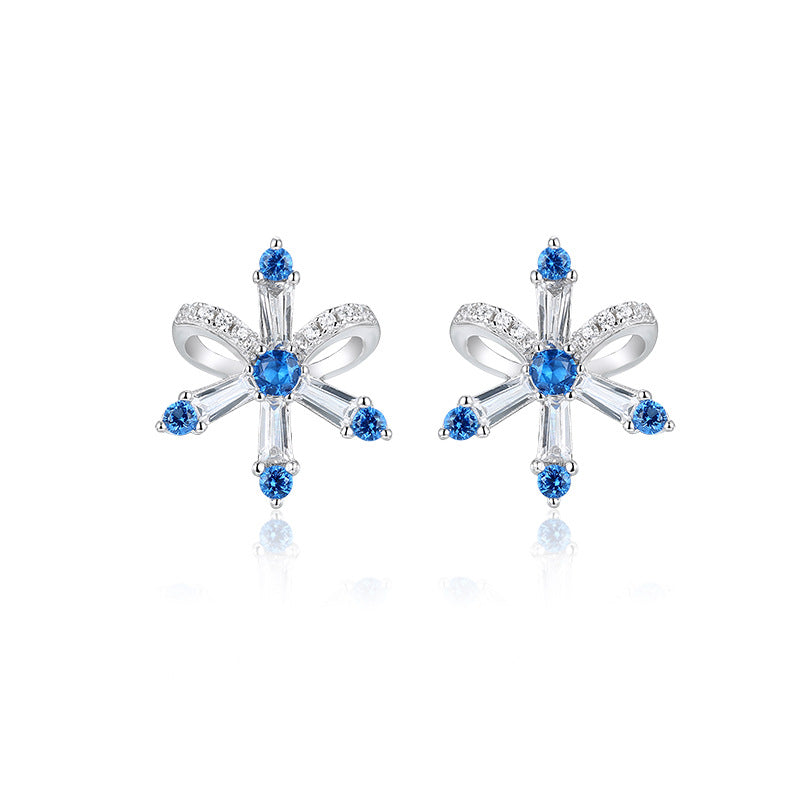 This Snowflake Bow with Blue Zircon Silver Studs Earrings for Women is sure to add some sparkle to any ensemble. Featuring crisp snowflake bow shapes with blue zircon. this earrings is perfect for all occasions. A must-have accessory for any jewelry collection.