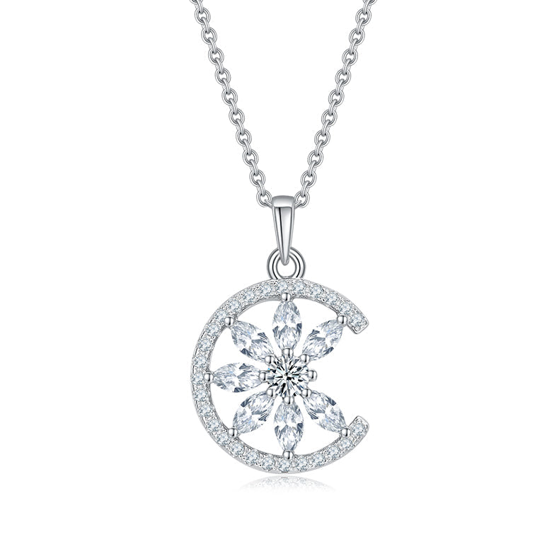This stunning C Shape Sunflower Moissanite Silver Necklace is an eye-catching accessory you won't want to miss. It features a C Shape Sunflower pendant with Moissanite stones for a sparkly and sophisticated look. Its simple yet chic design makes it a perfect piece for any occasion.