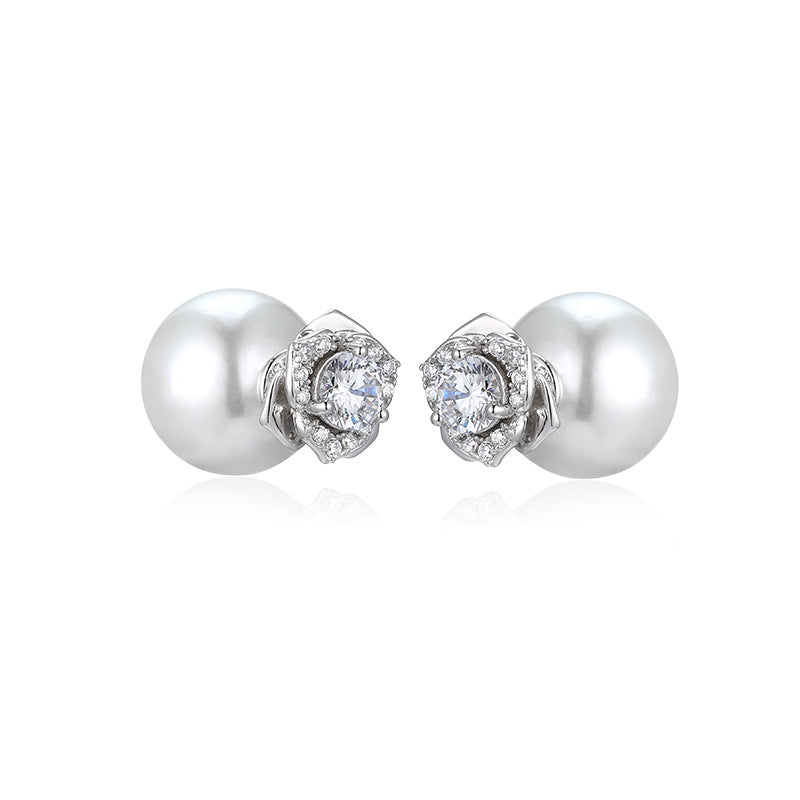 This luxurious Full Zircon Camellia with Pearl Silver Studs Earrings are expertly crafted with a pearl ear needle to showcase the elegance. Sparkly zircon camellia offer light refraction. adding an opulent yet understated touch to any outfit.