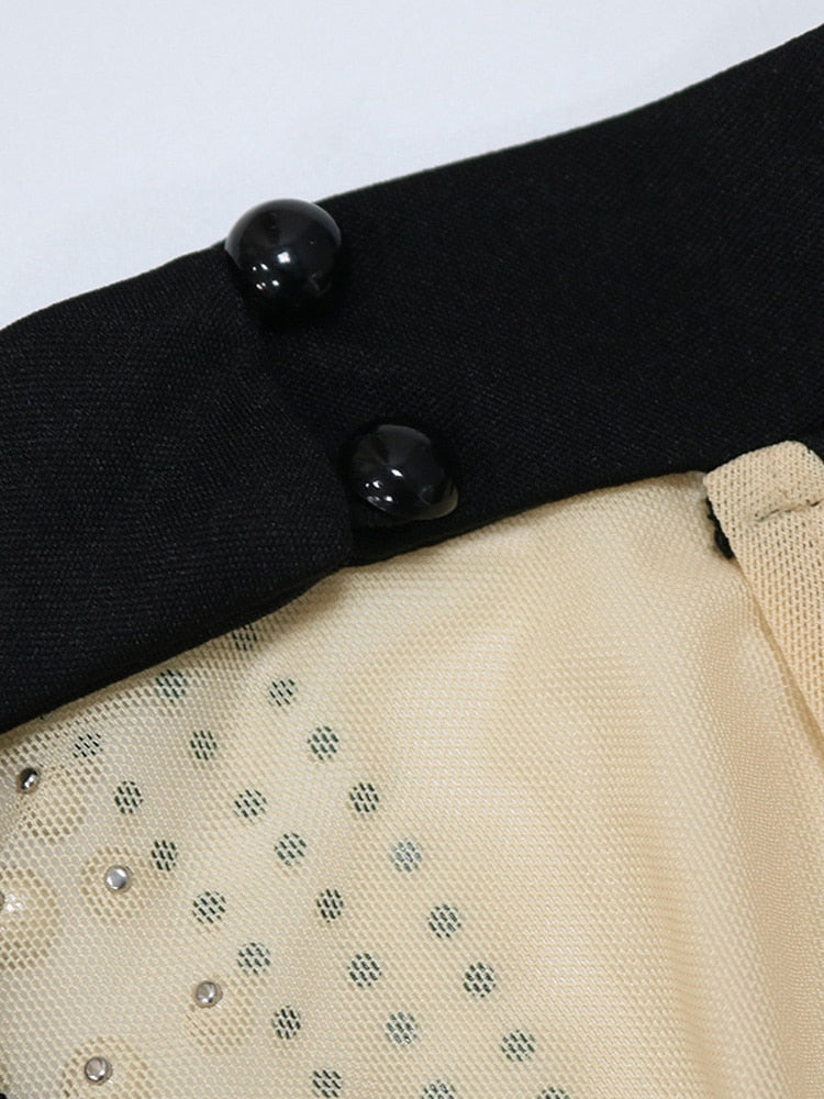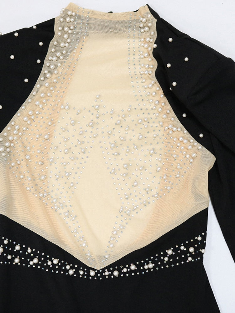 Cocktail Dresses For Women Evening Party Kricesseen Sexy Crystal Beading Mesh Patchwork Mini Dress Womens Long Sleeve Backless Bodycon Dresses Party Clubwear Outfits
