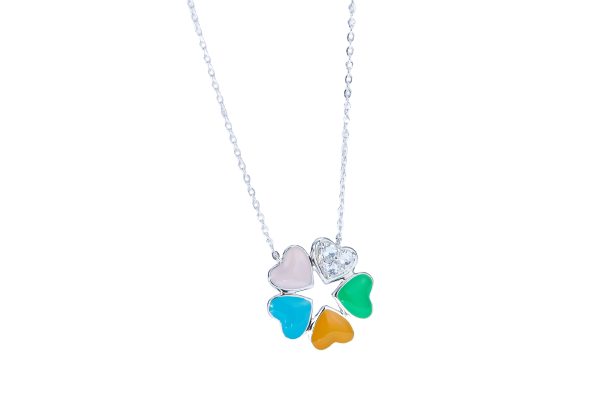 This Colourful Clover Pendant Enamel Silver Necklace for Women creates an eye-catching look with its clover shape pendant and five colourful heart-shape leaves. Show off your unique style with this one-of-a-kind necklace that is sure to make a statement.