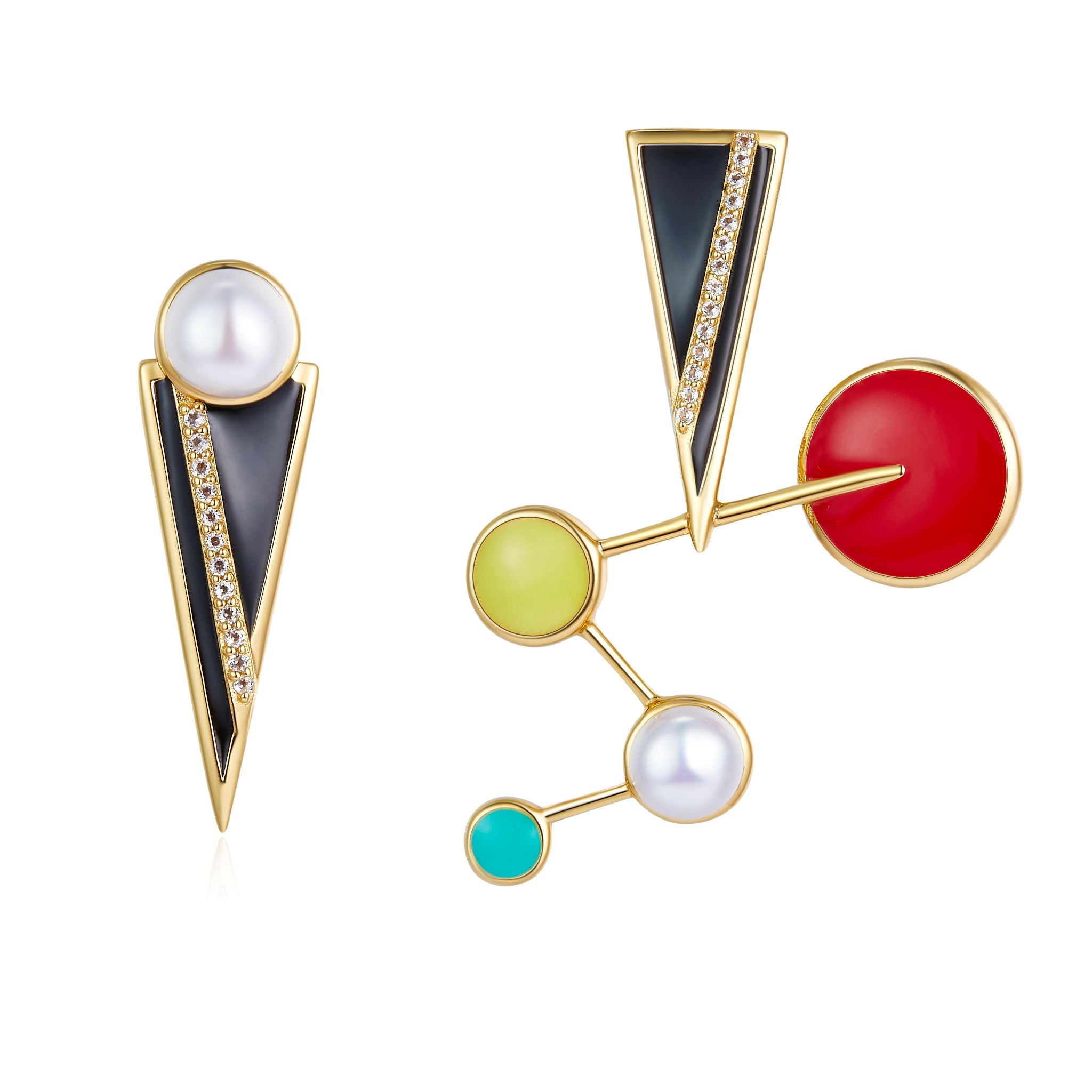Exquisitely crafted with vibrant. geometric shapes and sparkling pearls. this earrings are perfect for adding a subtle yet eye-catching statement to any outfit. Unique asymmetric design. this enamel colourful earrings will make you stand out with effortless elegance.