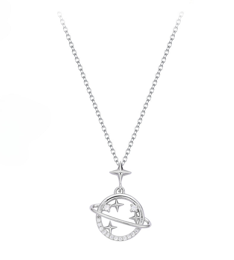 Make a cosmic statement with this stunning Galaxy Planet Zircon Pendant Silver Necklace. Crafted with quality materials. this piece features a beautiful Galaxy Planet Pendant decorated with Zircon for an eye-catching look. An ideal accessory for any occasion.