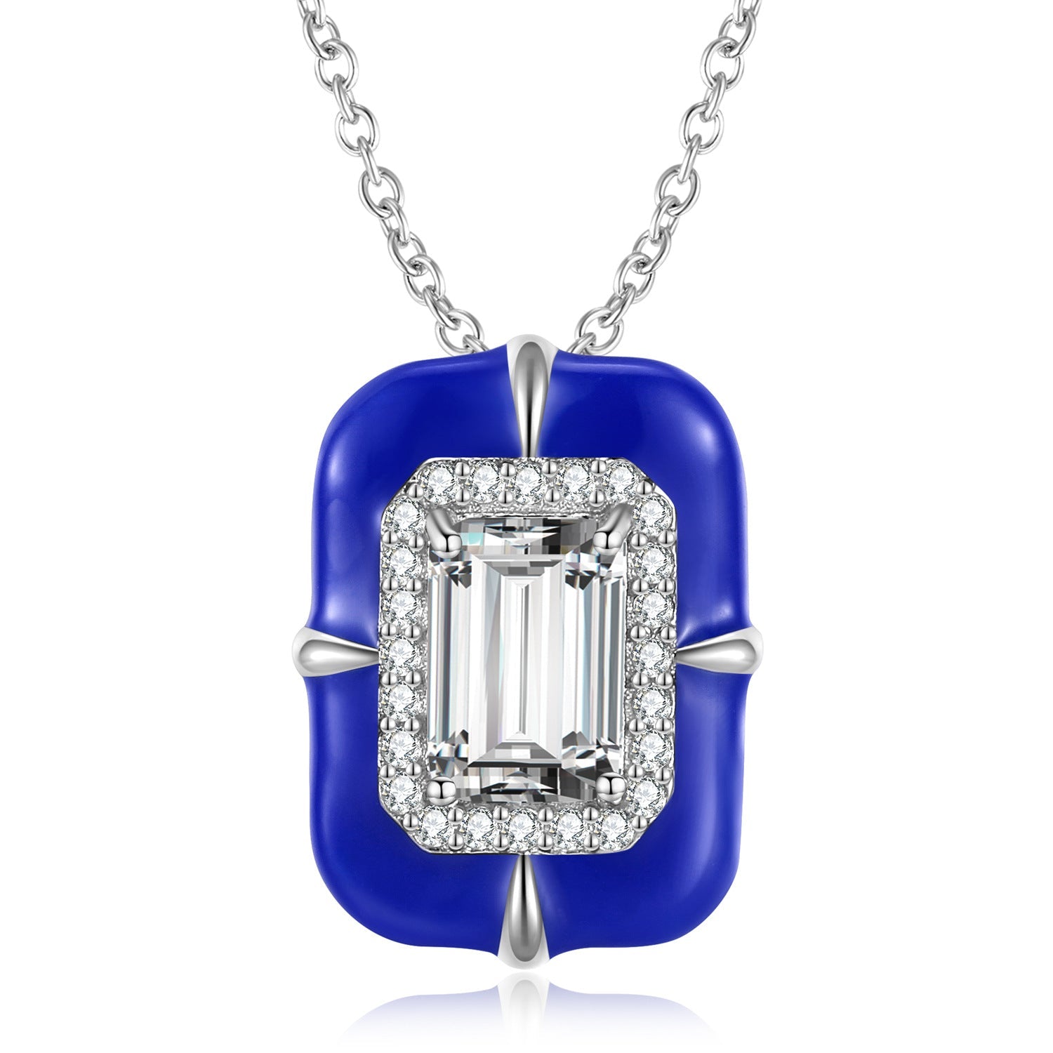 This classic Emerald Cut Zircon Blue Drop Glue Rectangle Pendant Silver Necklace effortlessly elevates any look. The necklace features a Blue Drop Glue Rectangle Pendant with an Emerald Cut Zircon with Soleste halo in the center. Perfect for formal or casual wear.