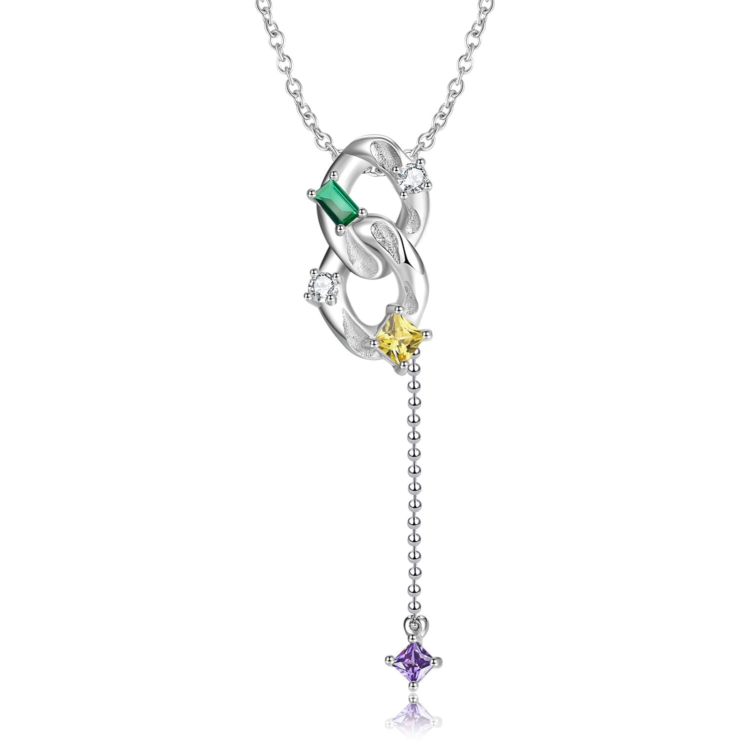 This eye-catching necklace features an unlimited symbol design pendant. adorned with an elegant tassel and dazzling colourful zircons for a truly unique and stylish look. Crafted with 925 sterling silver. it's a perfect accessory to any outfit.