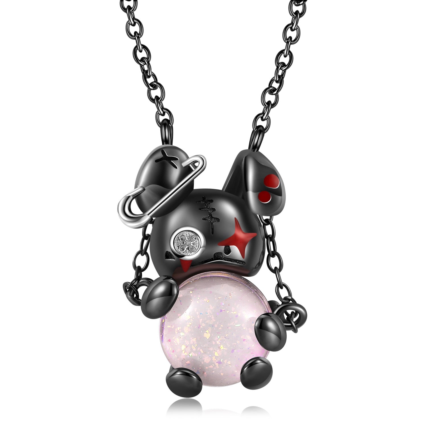 This necklace features an edgy Violent Doll Rabbit Pendant crafted in sterling silver plated in black. Sleek and stylish. it is the perfect accessory to add an alternative edge to any outfit.