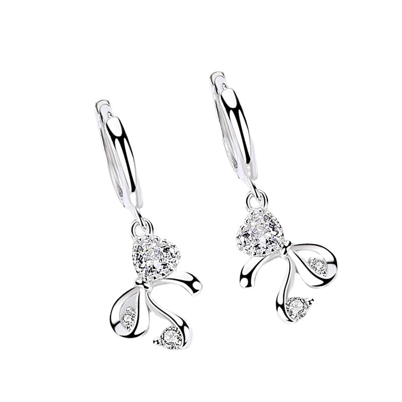 This hoop earring is an elegant and fashionable accessory. It features a delicate bowknot pendant. symbolizing sweetness and romance. The bowknot is adorned with several white zircons. shining with charming light. The material of the earrings is pure silver. with two options available: gold and silver. which can be paired with different clothing and occasions.