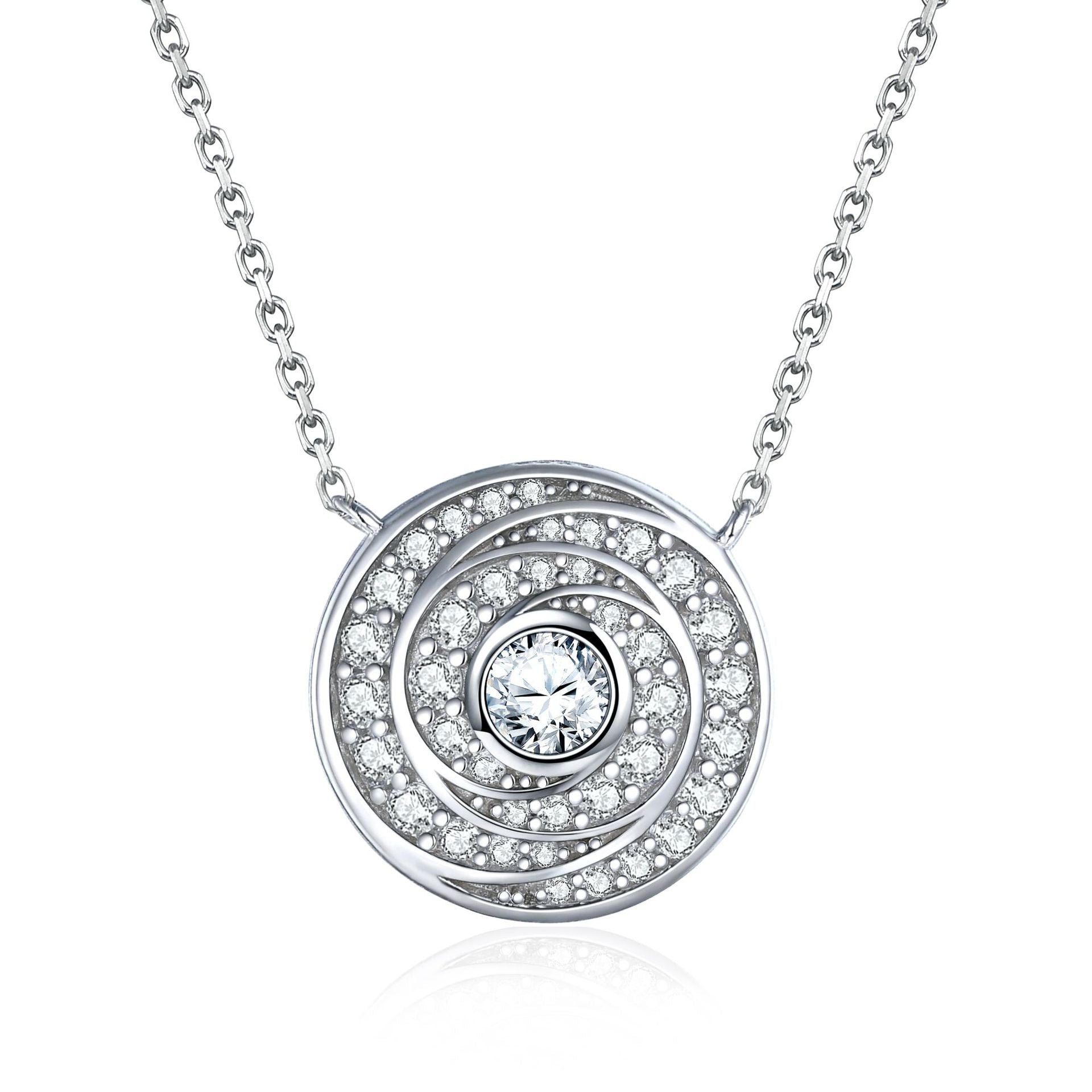 Experience the artistry of our Circular Vortex Zircon Sterling Silver Necklace. Crafted with a unique vortex design to capture the eye. this stunning piece is inlaid with beautiful Zircon to add a touch of sparkle. Wearing this necklace is sure to make a statement of sophistication and elegance.