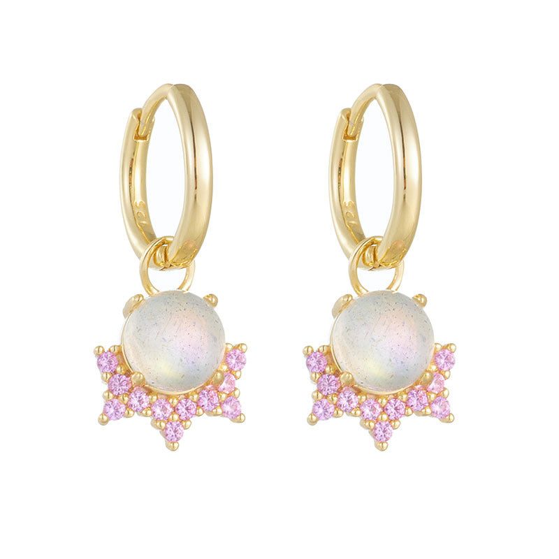 These Natural Elongated Stone pendant Silver hoop Earrings feature a round Natural Elongated Stone pendant decorated with purple zircon for adding a touch of luxury to any outfit. Crafted in a sterling silver. these hoop earrings will make a timeless addition to your jewelry box.