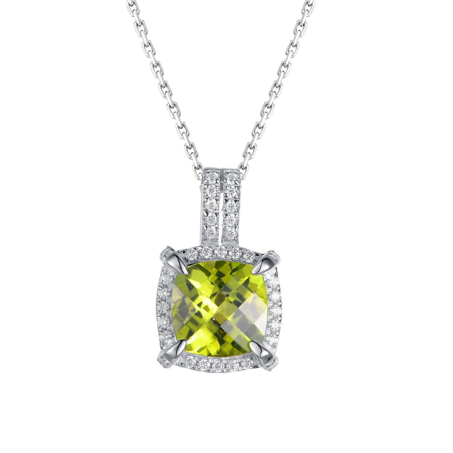 Let your style shine with the Soleste Halo Square Natural Olivine Silver Necklace. This elegant necklace features a square cut Natural Olivine gemstone adorned with a Soleste Halo. The perfect addition to any outfit or collection. the Necklace is the perfect way to show off your sophisticated taste.