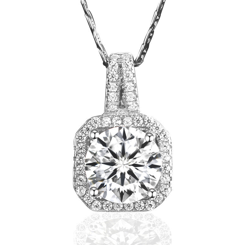 This Square with Zircon Soleste Halo Silver Pendant is a timeless classic for any woman. Expertly crafted with a round Zircon and surrounded by Square Soleste Halo. this pendant is delicately beautiful and elegant. Its sterling silver finish and eye-catching design make it the perfect addition to any outfit.