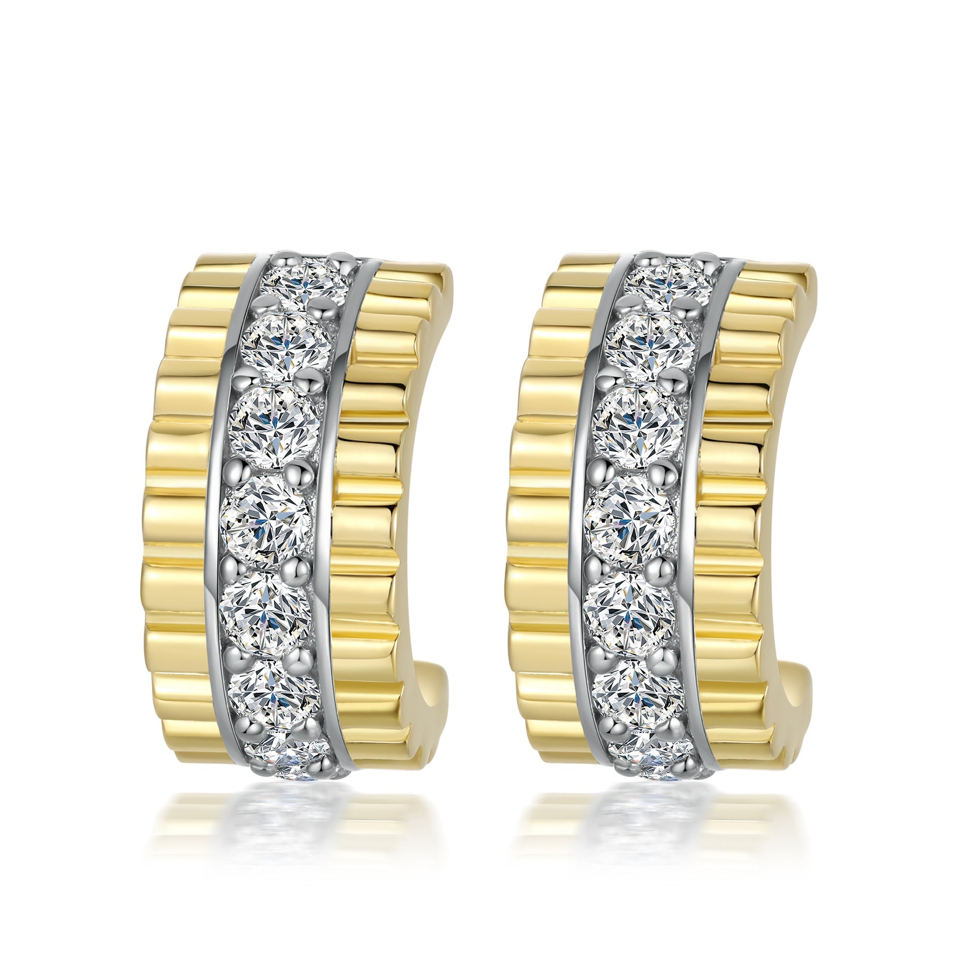 These elegant Golden C Shape Zircon Sterling Silver Stud Earrings are the perfect accent to your refined look. Expertly crafted with sterling silver plated in gold and decorated with a row of sparkling Zircons. these earrings will add an instant touch of class to any occasion.