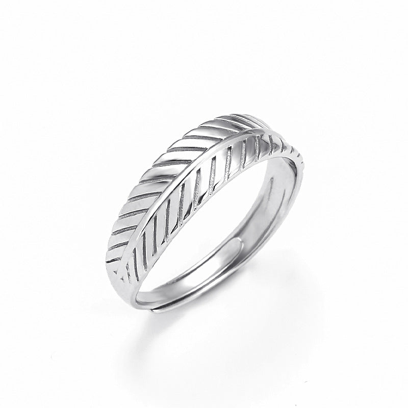 Embrace love and elegance with this Cupid's Feather Opening Sterling Silver Ring. Crafted with precision. this delicate piece symbolizes the purest form of love and features a unique feather design that delicately wraps around your finger. Perfect for a refined and luxurious touch to any outfit.