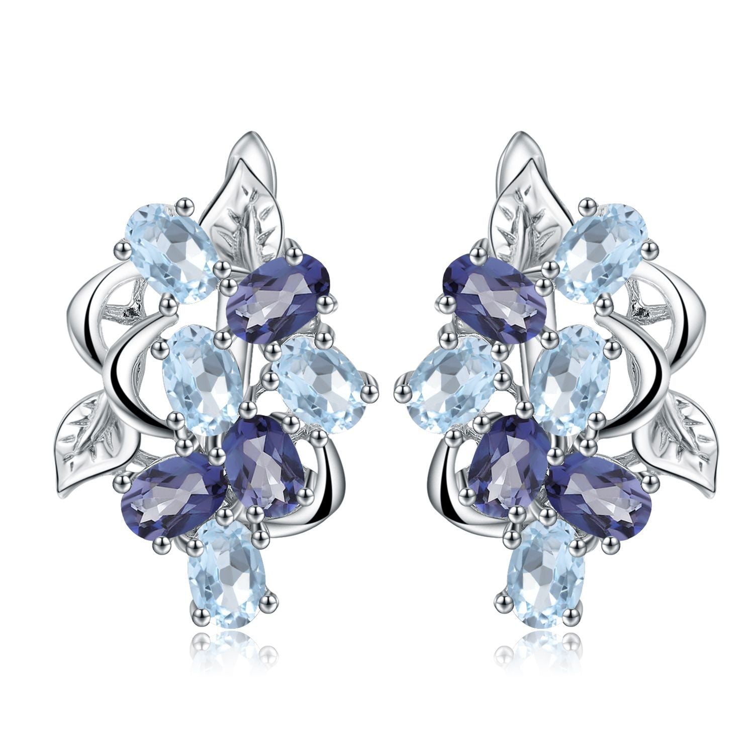 This elegant earrings feature a classic European vintage style. with a flower design featuring natural blue topaz. Crafted with sterling silver . they are perfect for adding a touch of classic style to any outfit.