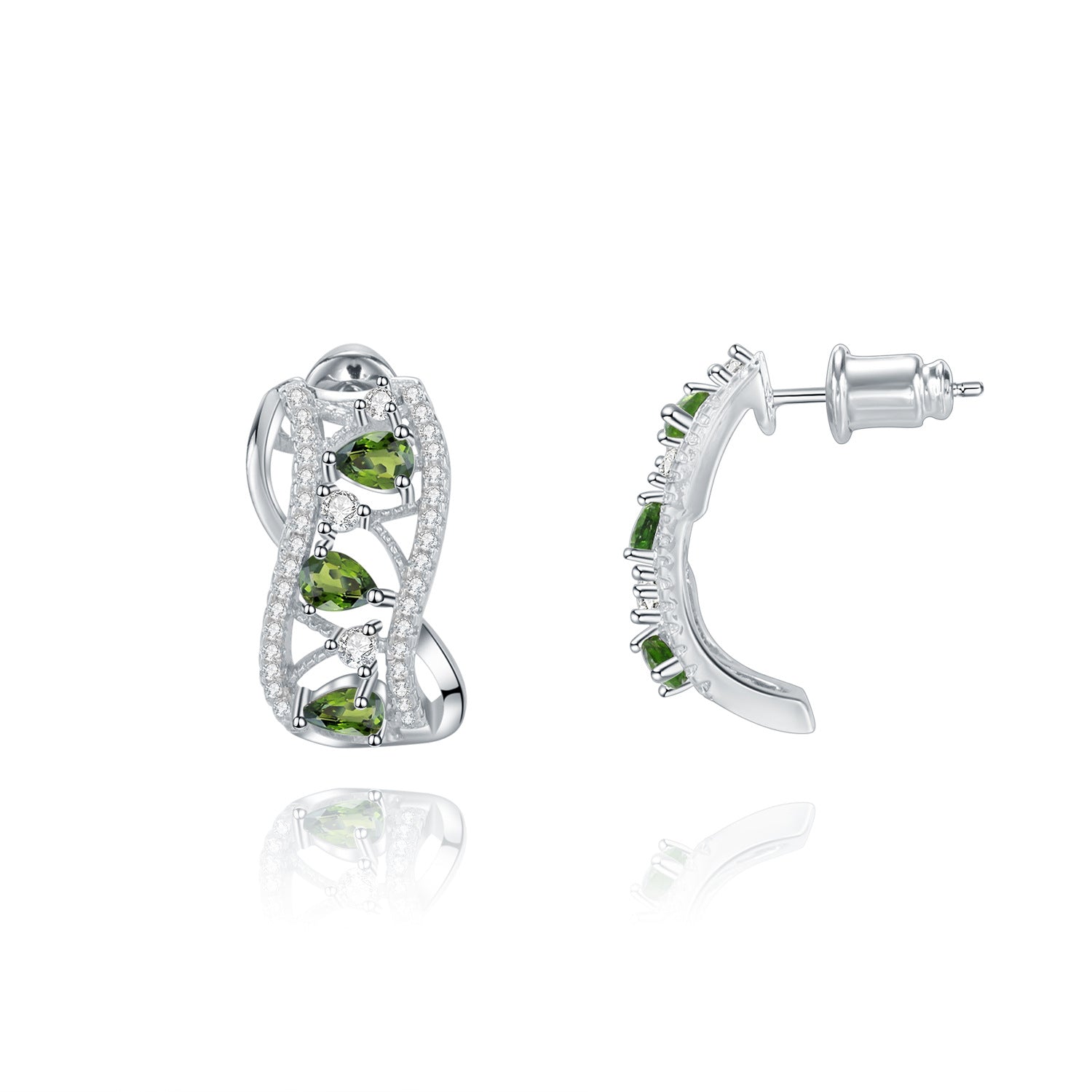 These beautiful C Shape Wave Stud Earrings are crafted from sterling silver and set with pear shape Natural Diopside. for a truly unique look and feel. Perfect for adding a touch of elegance to any outfit. these earrings are sure to make a stylish statement.