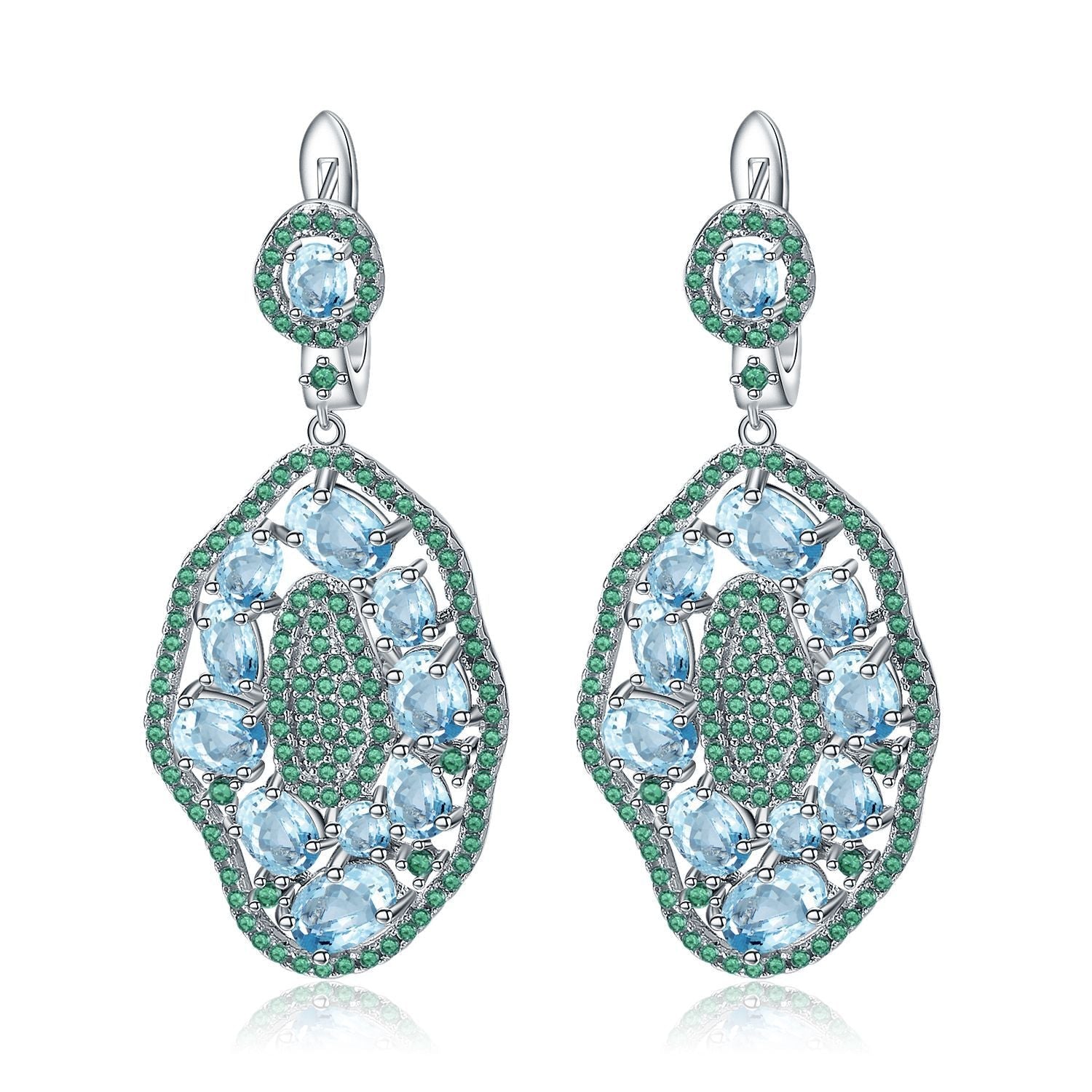 This European luxury style silver drop earrings for women feature an irregular oval-shaped pendant encrusted with natural topaz for an exquisite and timeless look. Crafted from sterling silver. you'll look and feel elegant in this classic design.