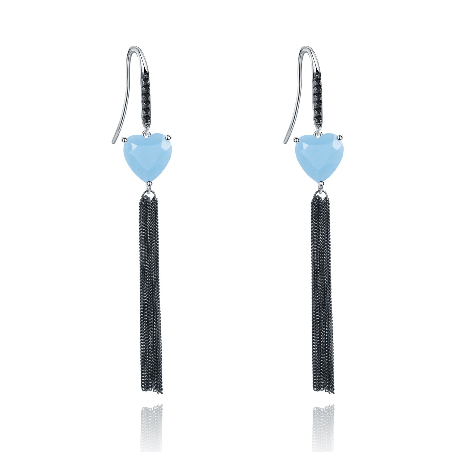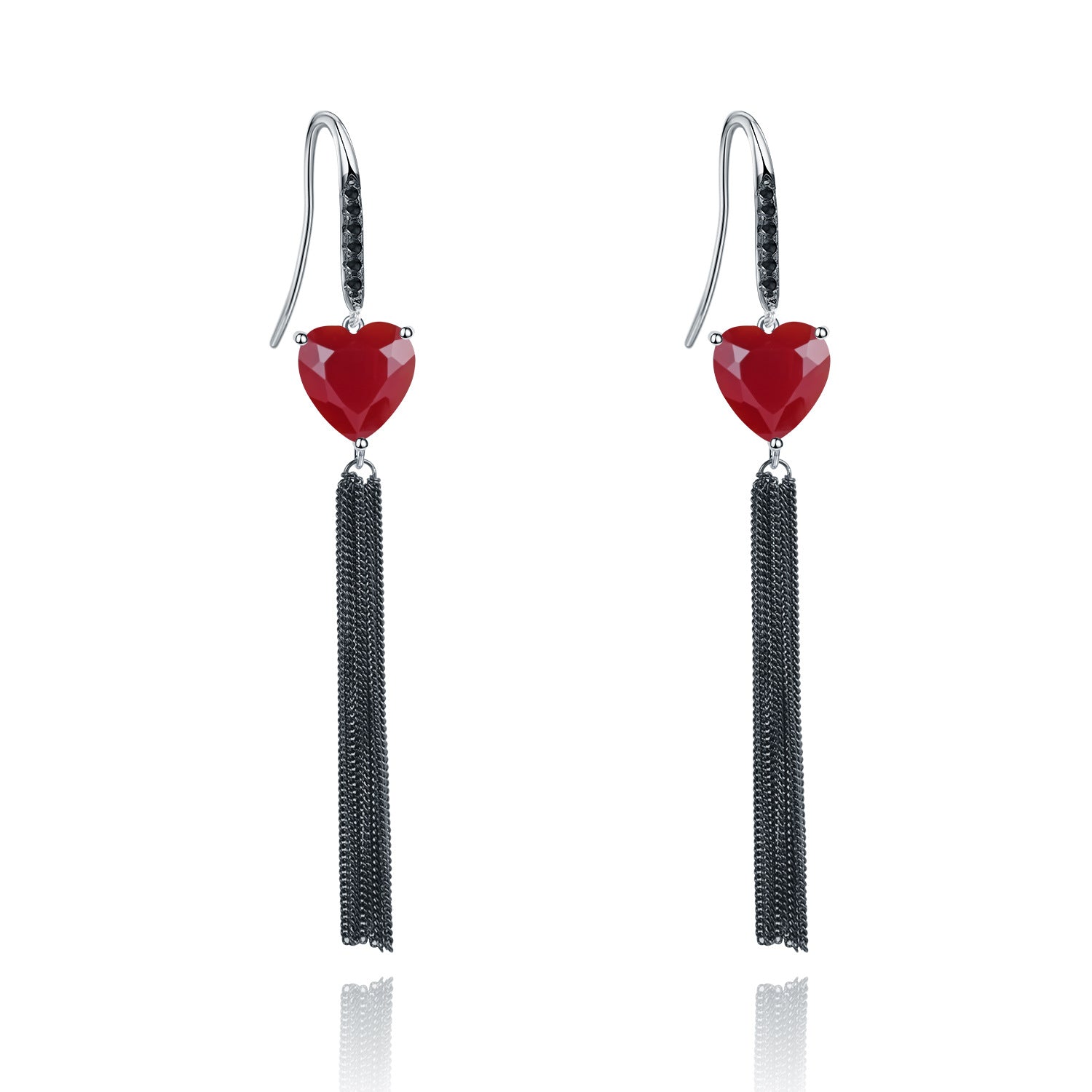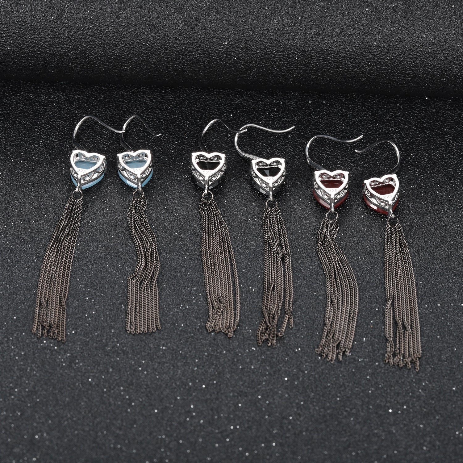 This Premium Natural Colourful Gemstone Love Heart Tassel Silver Drop Earrings will add a touch of sophistication to any ensemble. Crafted from quality gemstone and sterling silver. this earrings feature a charming heart-shape design and tassel drop to add a gorgeous finishing touch to any look.