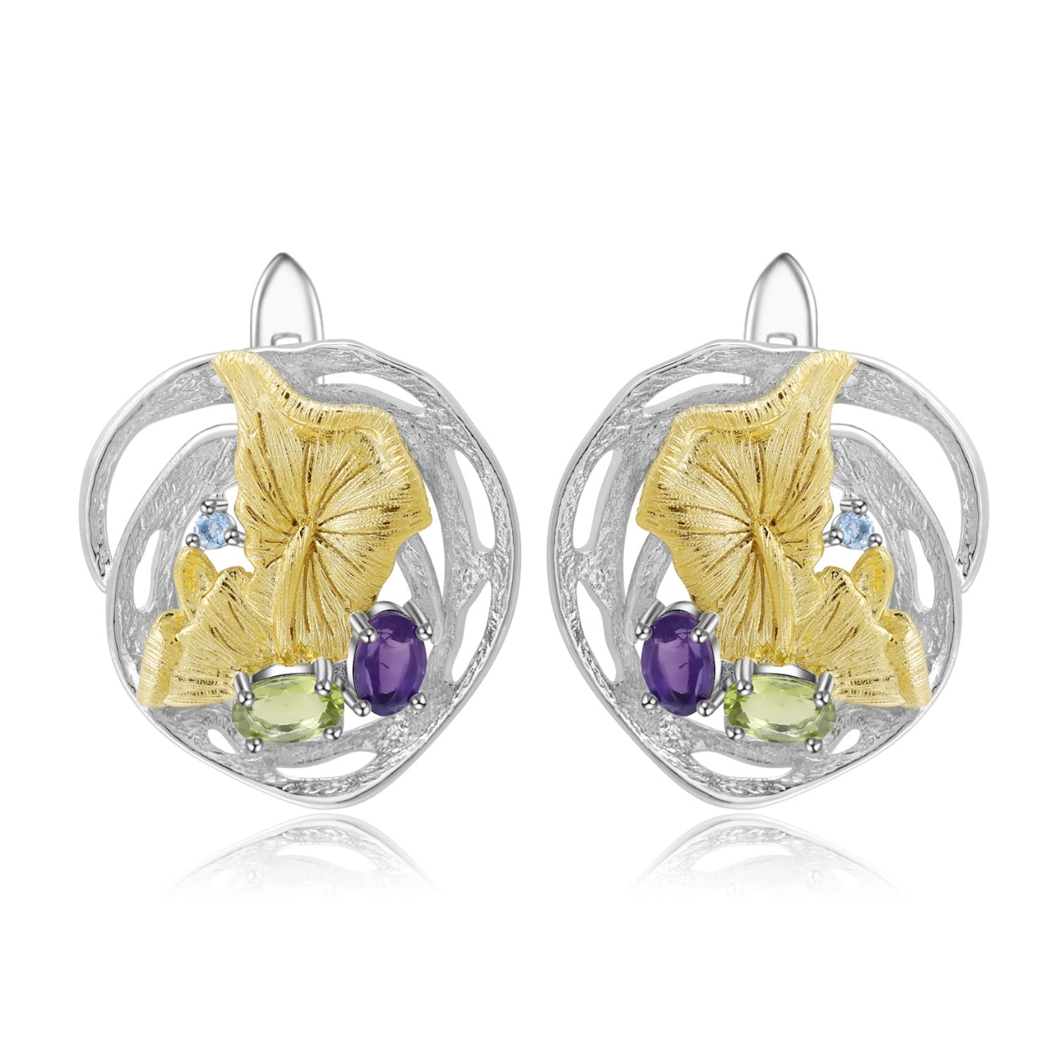 This Premium Natural Colourful Gemstone Sterling Silver Studs for Women feature a gorgeous garden design with colourful gemstones. Finely crafted. this studs to sure to last for years to come. Their elegant look will complement any ensemble. and make a statement wherever you go.