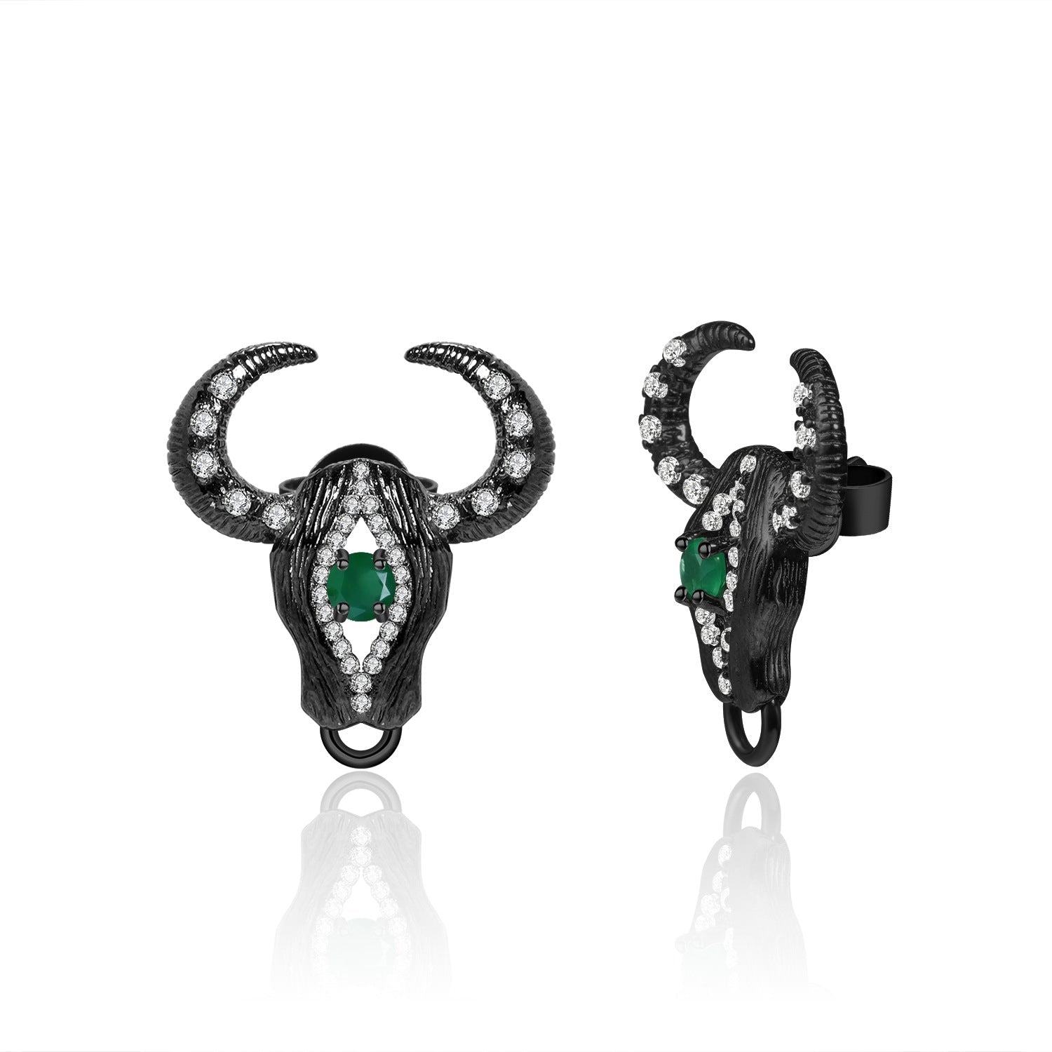 This beautiful Dark Vintage style studs feature an intricately designed Bull Head. with colourful gemstones. Made from silver. these elegant and unique studs are crafted for the modern personality woman.