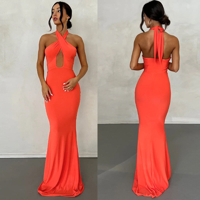 Elegant Backless Party Dress for Women Summer Sexy Halter Neck Bodycon Maxi Dress 2023 Evening Club Long Dress Black Vestido