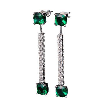 This stunning emerald-hued drop earrings feature lab-created 6.6 Carat cushion-shape stones and exquisite enamel detailing. The tassels design adds a chic twist and the sterling sliver finish ensures timeless glamour. Perfect for the contemporary woman.