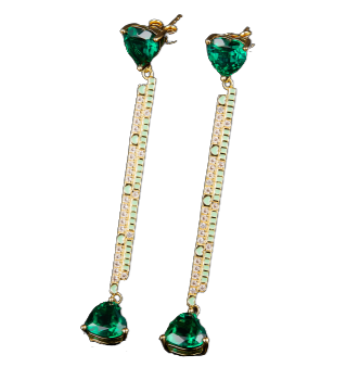 This heart-shaped luxury earrings are crafted with a lab-created Emerald stone. enameled in Emerald hues and a Balance Love tassel design. They are crafted from Sterling silver. making this earrings perfect for any occasion.