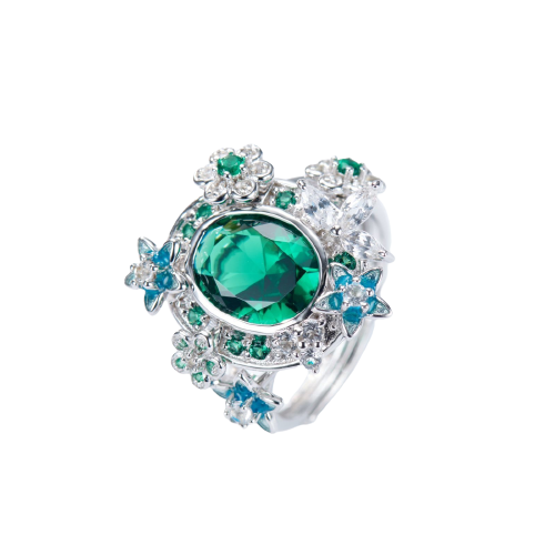 This Secret Garden Oval Cut Emerald Colour Topaz Enamel Sliver Ring makes a stunning addition to any jewelry collection. It features a oval green topaz surrounded by a Secret Garden with enameled emerald gemstones. Crafted with care from sterling silver. this ring is the perfect way to show off your unique sense of style.