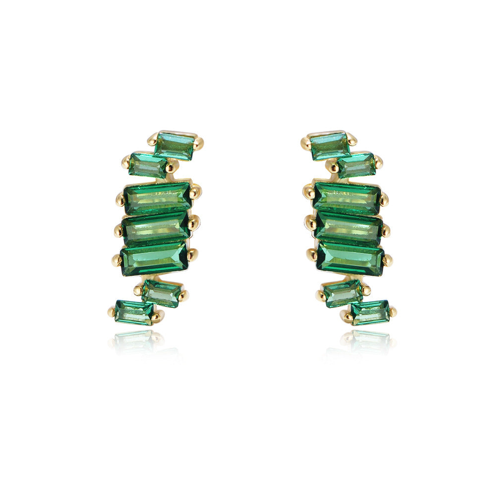 This Irregular Arrangement Rectangular Green Zircon Silver Studs Earrings for Women feature lively rectangular green zircons set in a unique arrangement. giving them a unique and beautiful aesthetic. Crafted from sterling silver. this earrings is the perfect accessory for any special occasion.