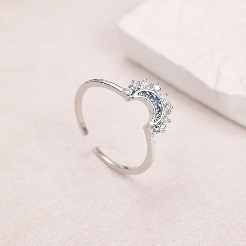 This Zircon Sun and Moon Opening Sterling Silver Ring Pack is crafted with finesse and sophistication. Adorned with glimmering zircons. this adjustable opening ring pack features a unique sun and moon design. embodying the harmonious balance of day and night. Refined and elegant. this ring will make for an exquisite accessory that will set you apart.