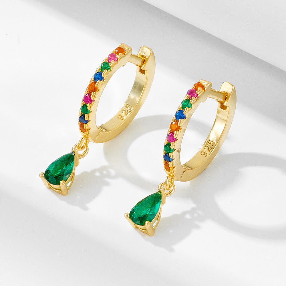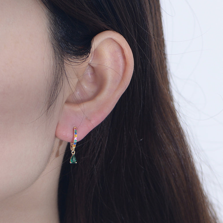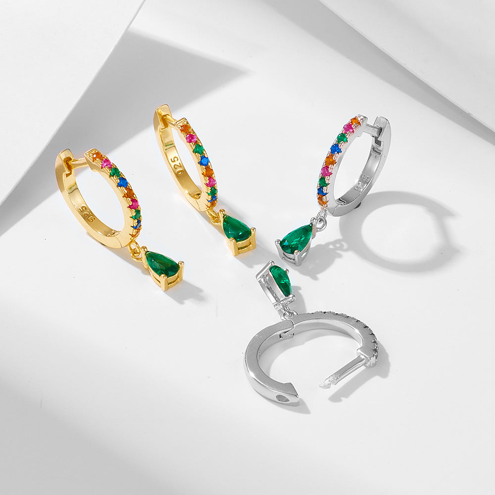 Made to capture the wearer's heart and gaze. these earrings crafted from sterling silver are a timeless addition to any jewelery collection. Entirely unique. these impressive hoops are adorned with a striking of coloured zircons and hang with a lusciously hued Pear Shape Green Zircon Pendant. for a truly exquisite finish.